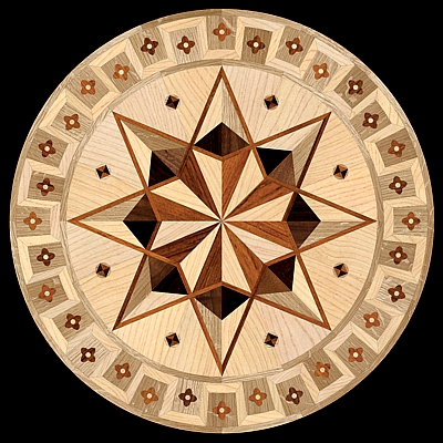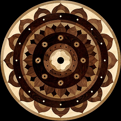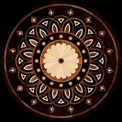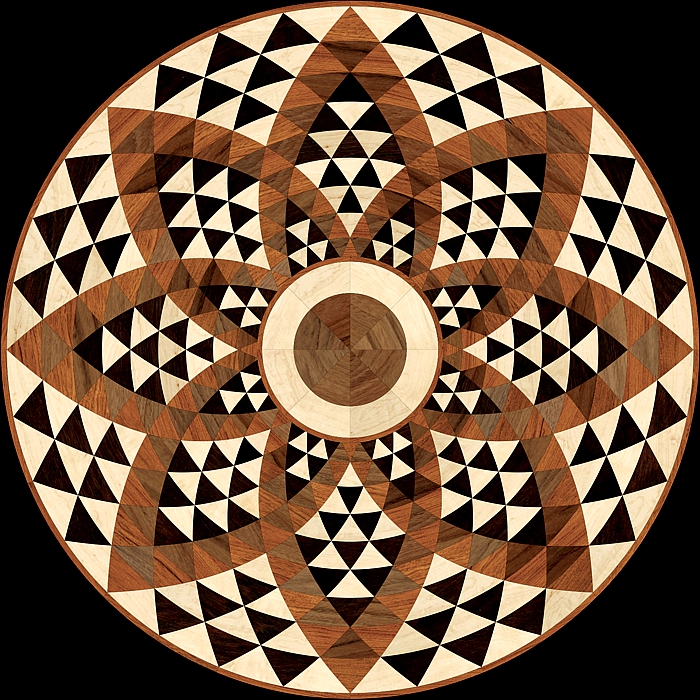 Colecția MARQUETERIA conține medalioane cu intarsie pentru parchet masiv ale căror caracteristică comună este utilizarea, în principal, a elementelor componente formate din linii curbe.